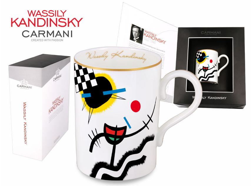 Porcelán z dielne austrálskeho výrobcu Carmani charakteristický vlastným dizajnom a kvalitným prevedením so živými farbami, motív Kandinski, darčekové balenie.