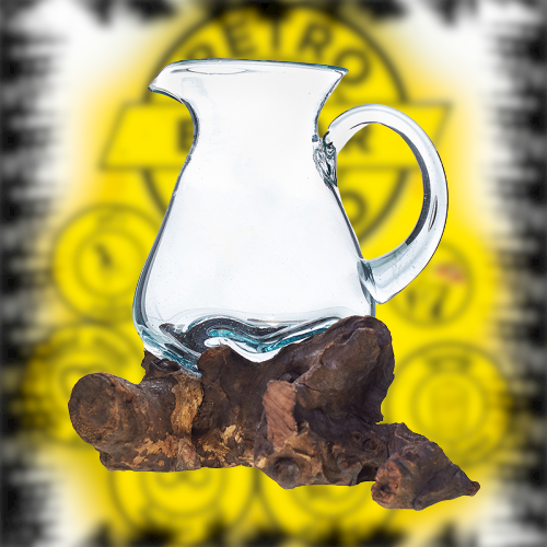 Roztavené sklenené nádoby na dreve sa ručne vyrábajú fúkaním z recyklovaného skla a koreňov z dreva Gamal (Gliricidia Sepium) ma Bali. Ešte horúce sklo sa umiestni na výrez koreňa a nechá sa zatvrdnúť do tvaru dreva čím sa zaistí jeho dokonalé uchytenie. Každý z týchto výrobkov je jedinečný. Krásny, ekologický, originálny darček, dekorácia.