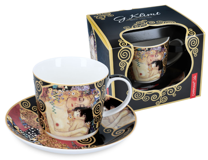 Porcelán z dielne austrálskeho výrobcu Carmani charakteristický vlastným dizajnom a kvalitným prevedením so živými farbami, motív Gustáv Klimt Matka s dieťaťom. Vhodné ako darček k narodeniu dieťaťa.